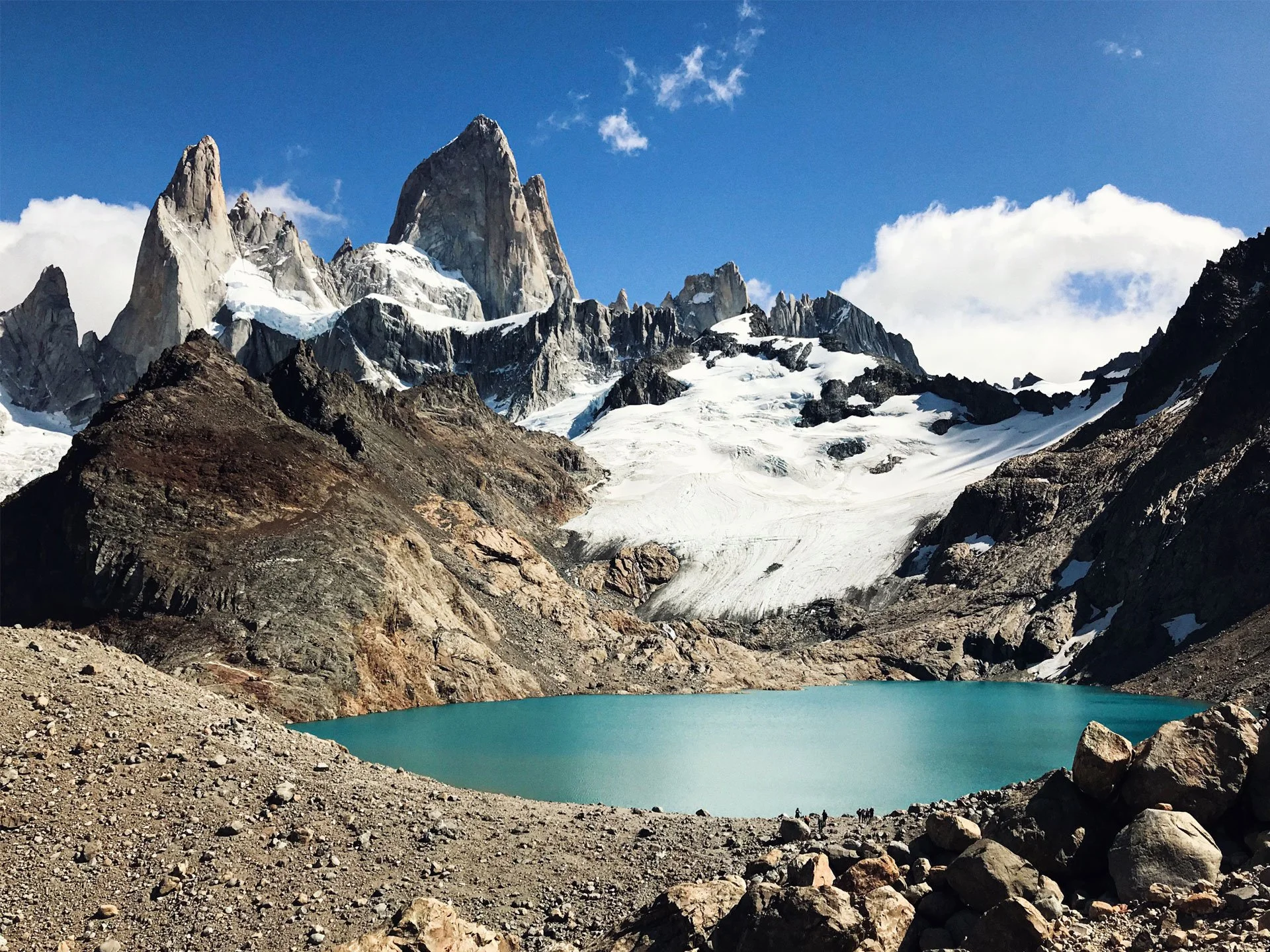 Laguna de los Tres es la vedette del viaje y una de las más largas y difíciles. Esta laguna está en la base del pico Fitz Roy o Chaltén. A la ida, una posibilidad es tomar un taxi hasta El Pilar. De esa manera, vas a ver diferentes paisajes que a la vuelta al Chaltén.